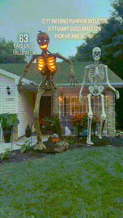 New! 5ft Pumpkin Skeleton Black Light Reactive Ground Breaker