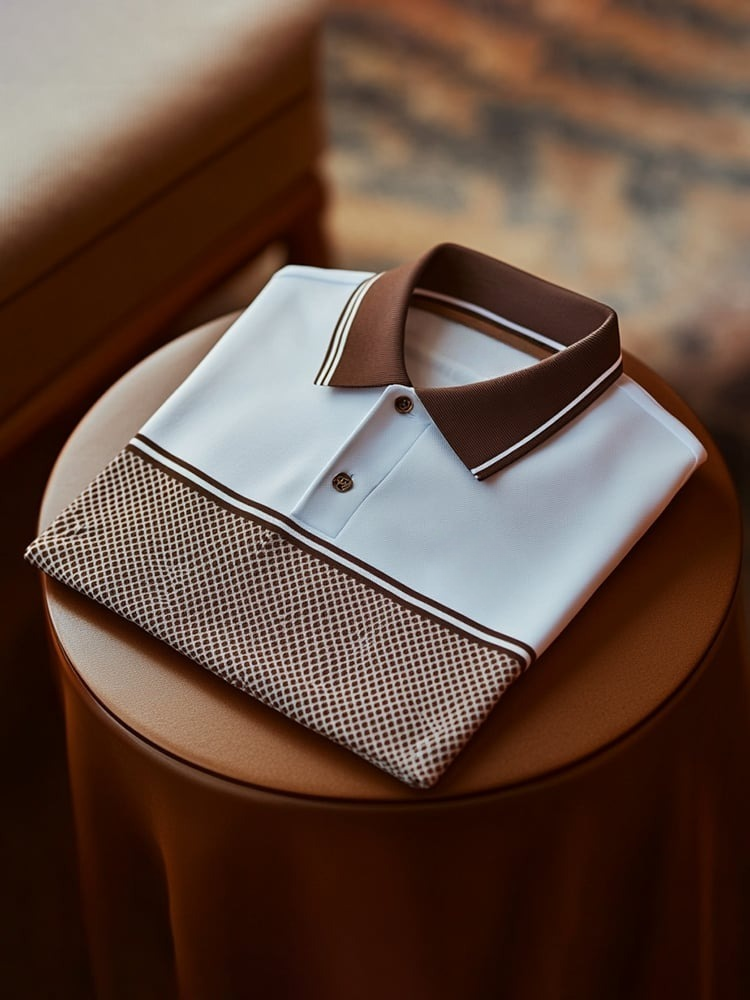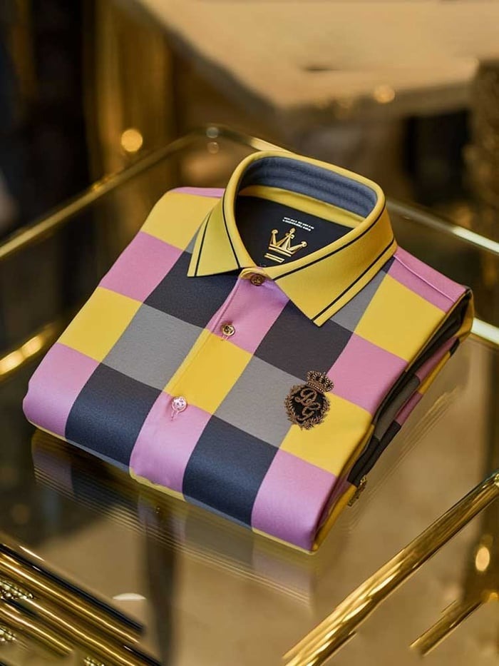 Men's Classic Business Check Button Short Sleeve Polo Shirt