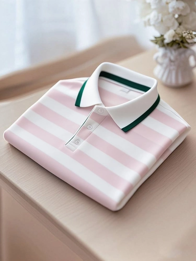 Men's Business Casual Pink Striped Button Short Sleeve Polo Shirt