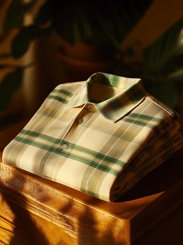 Men's Business Casual Plaid Button-Down Short Sleeve Polo Shirt