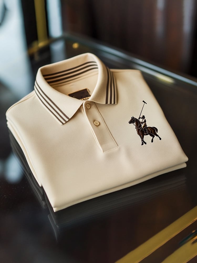 Men's Business Casual Horseback Rider Button-Down Short Sleeve Polo Shirt