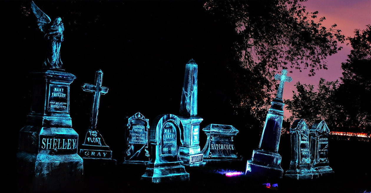 Here we have a small cemetery’s worth of tombstones sculpted out of EPS foam.