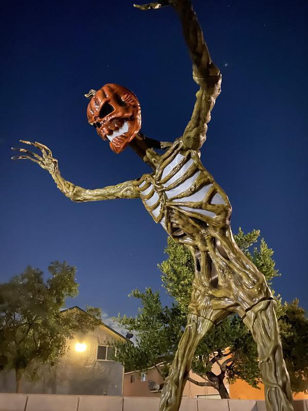 - Inferno pumpkin skeleton stands 12 ft. H x 7 ft. W