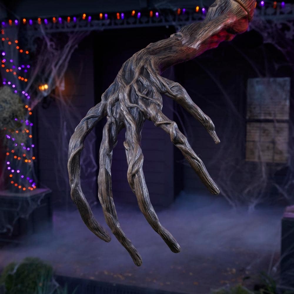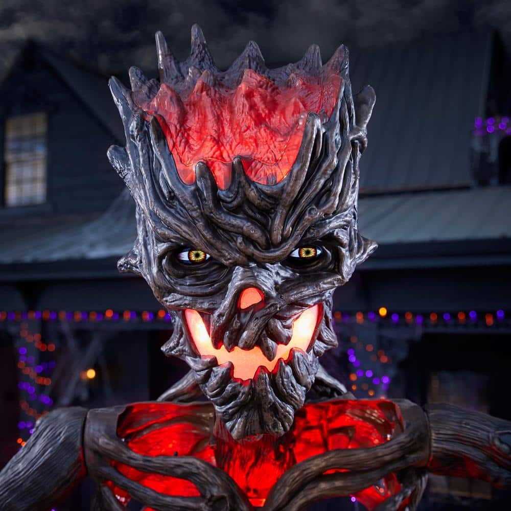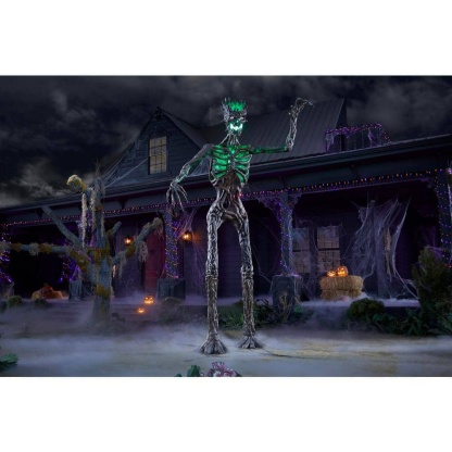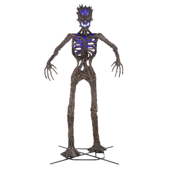 The 12.5 ft. Giant-Sized Inferno Deadwood Skeleton has animated LCD LifeEyes that move and blink. The Deadwood Skeleton has poseable arms and a color changing light up chest with 7 different color change options. The chest, mouth, nose, and head all illuminate. This outdoor 12.5 ft. Inferno Deadwood Skeleton is perfect for any Halloween display.