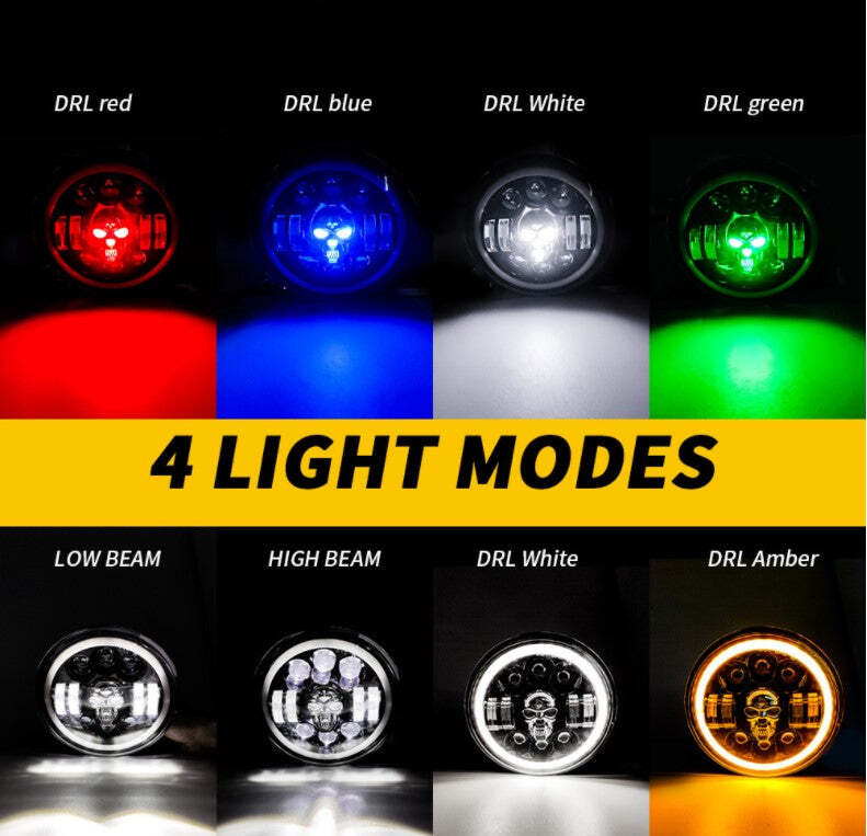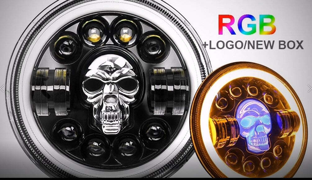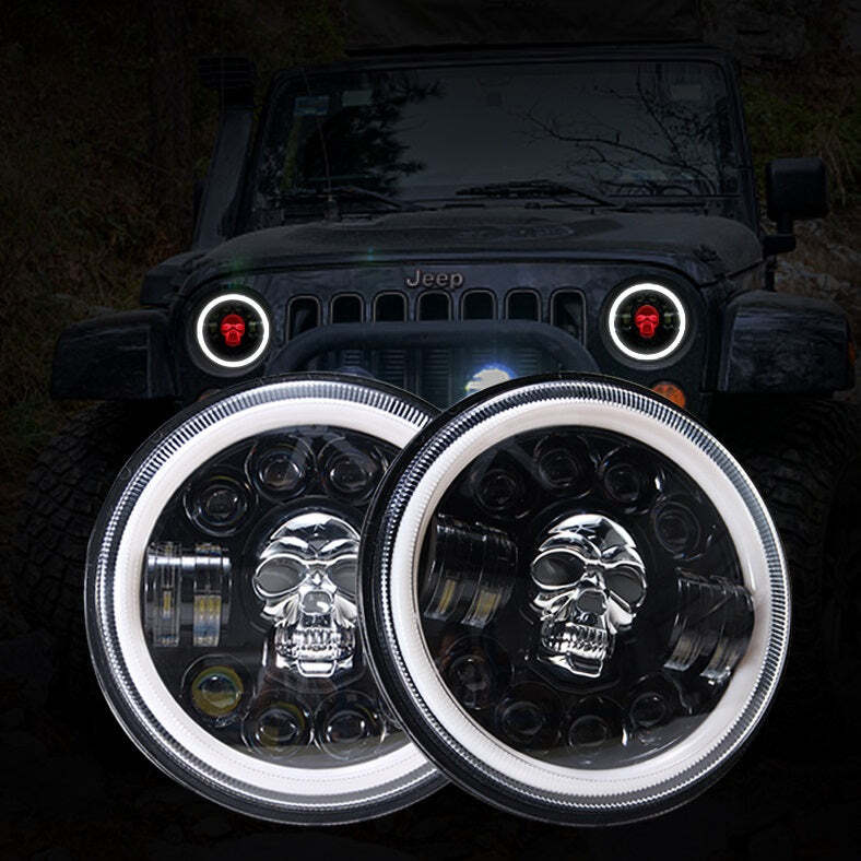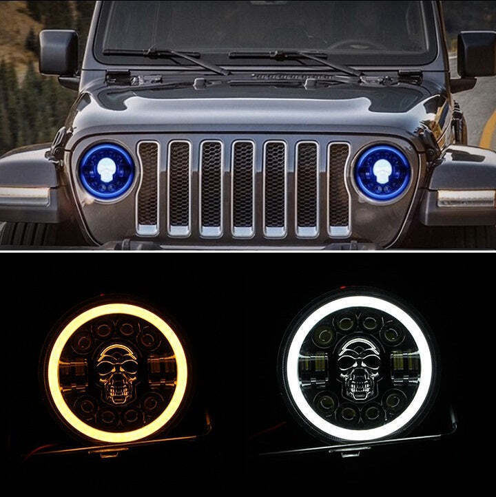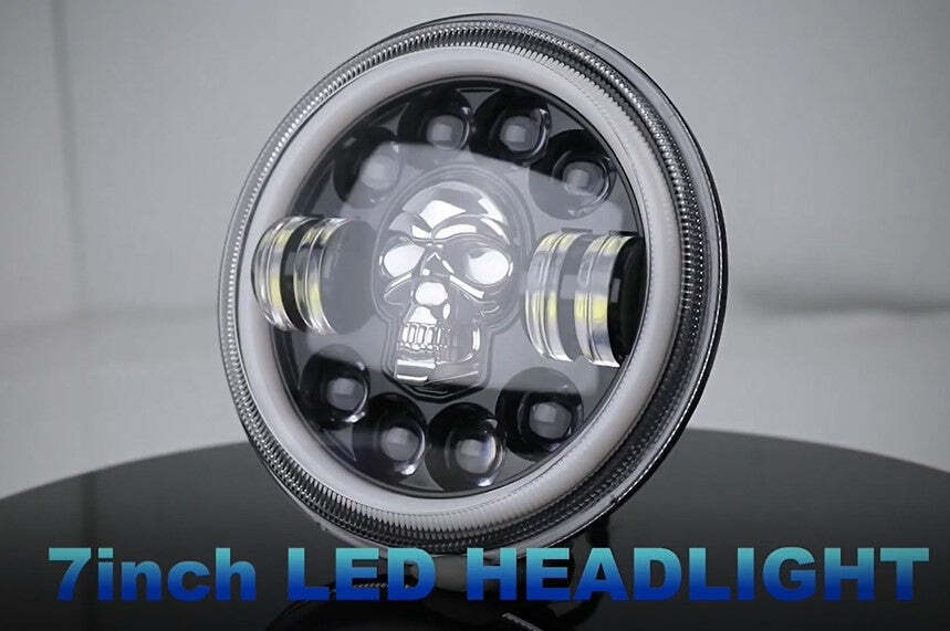7 inch Skull LED Headlights For JEEP, SUV, motorcycle or other cars with Round headlights