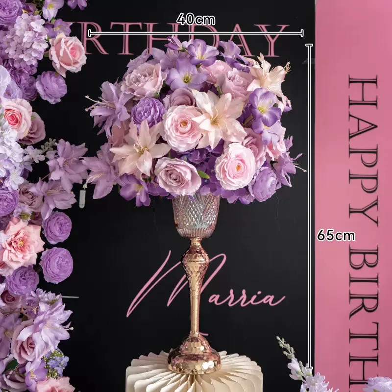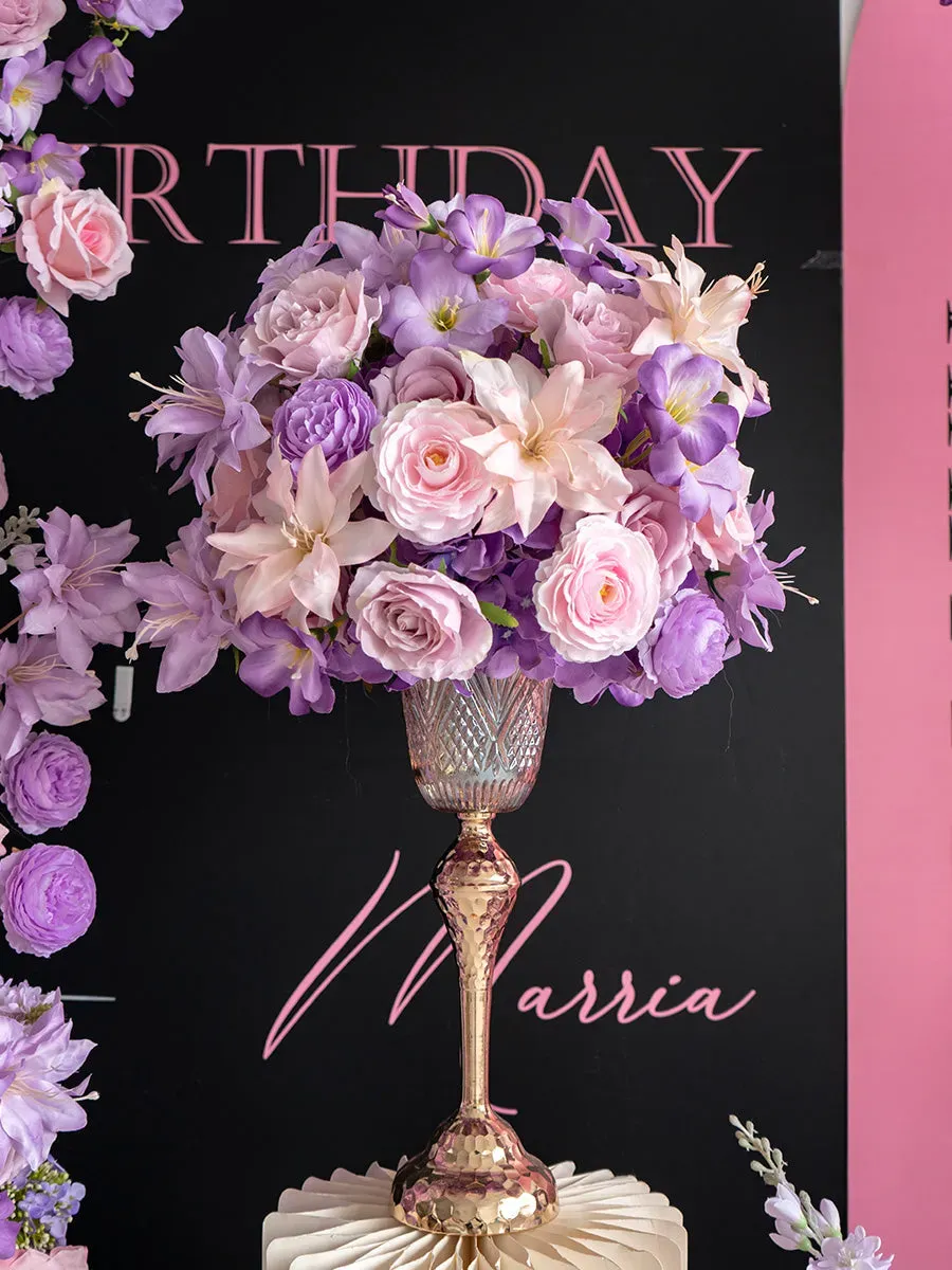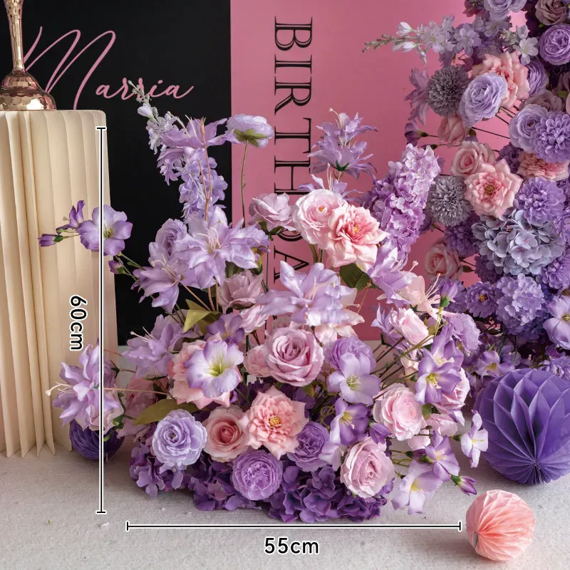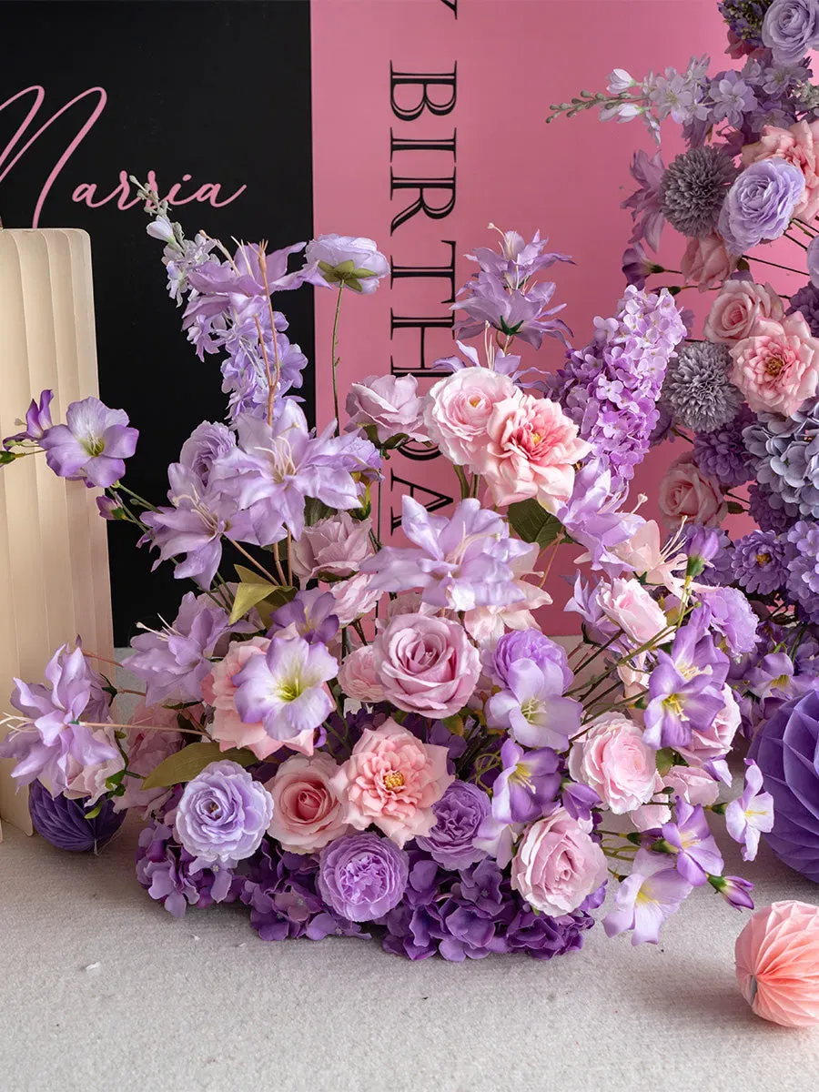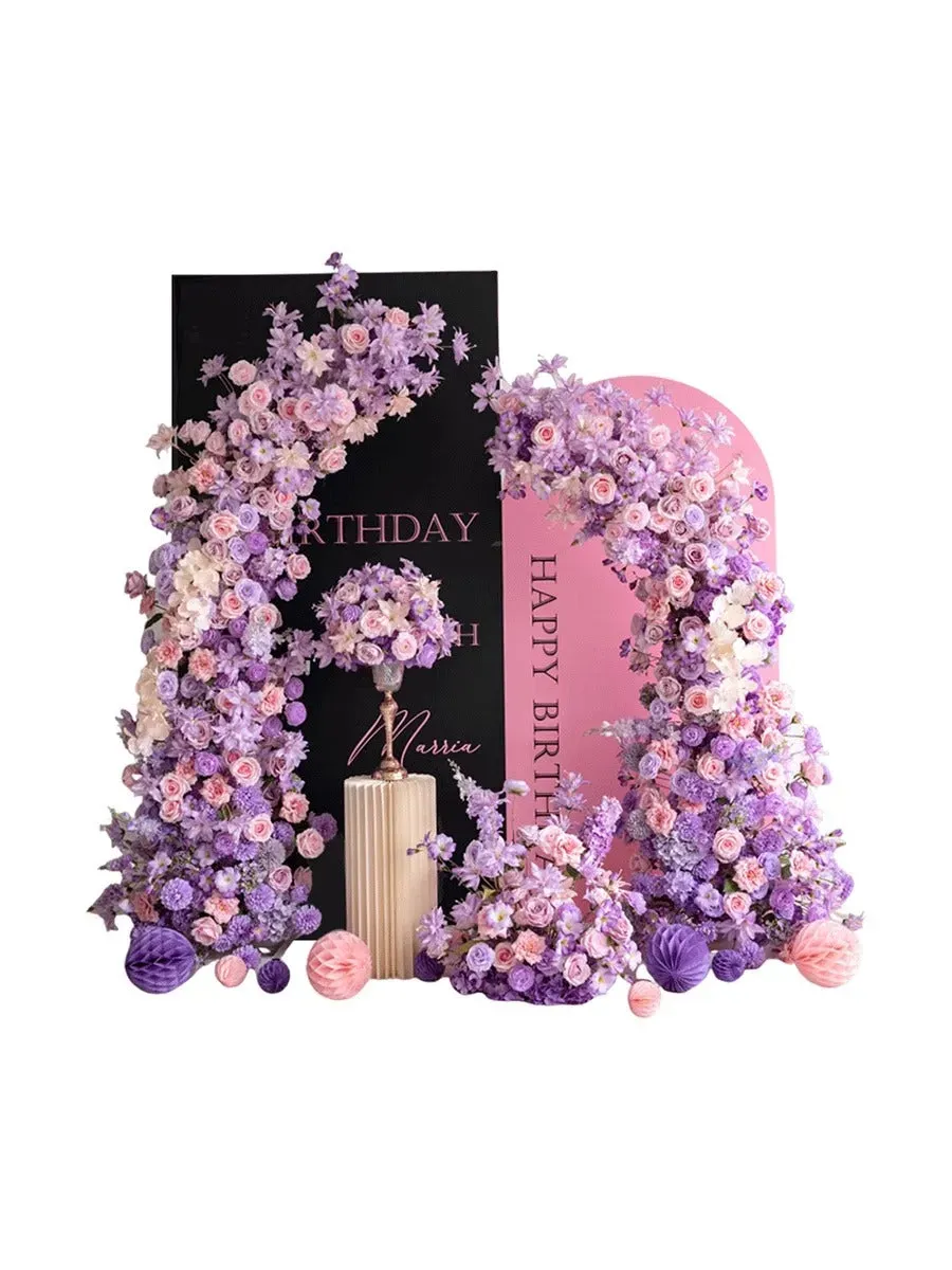 Purple Horn Arch Wedding Backdrop Kt Board Decor Floral Arrangement