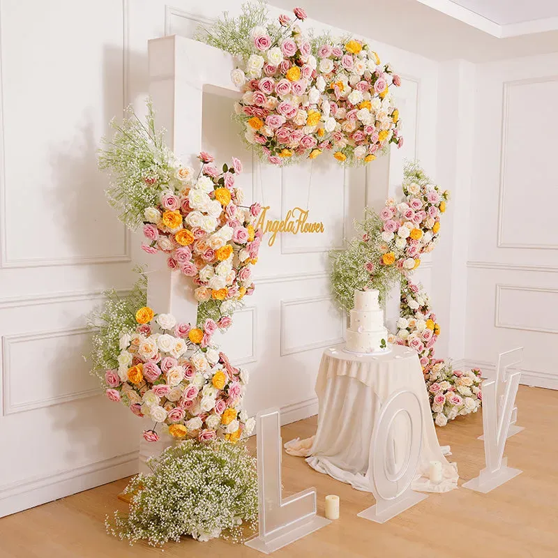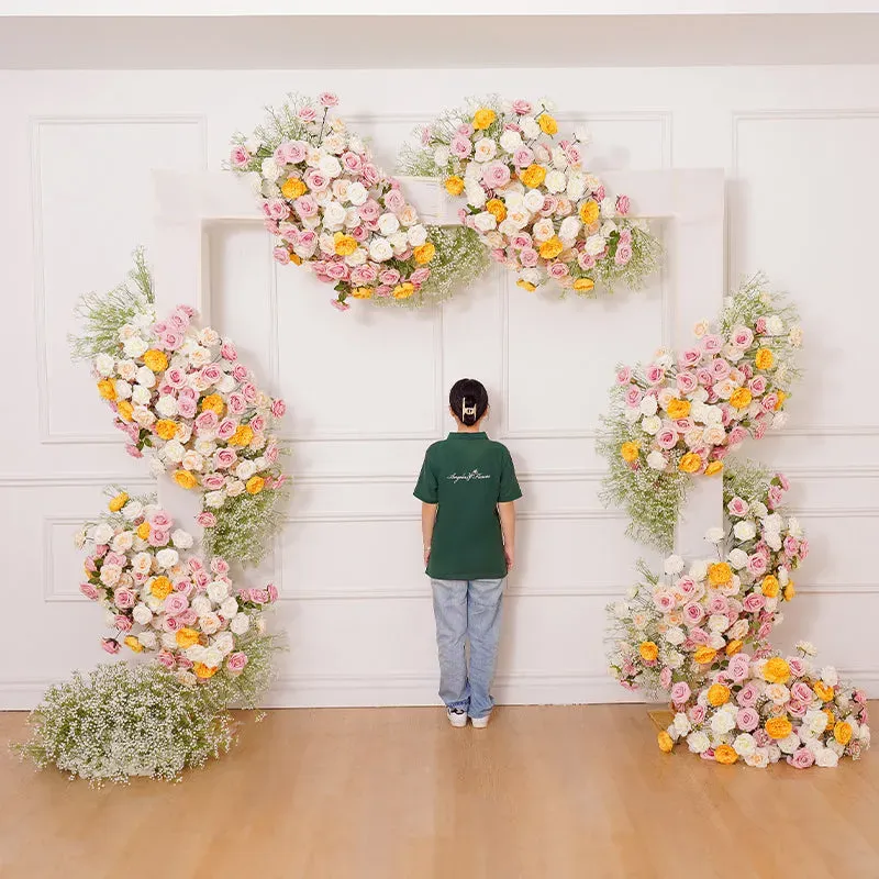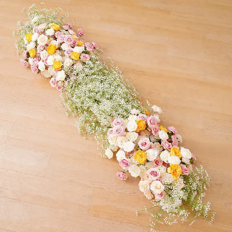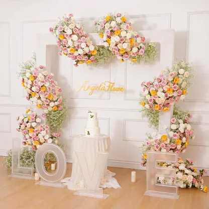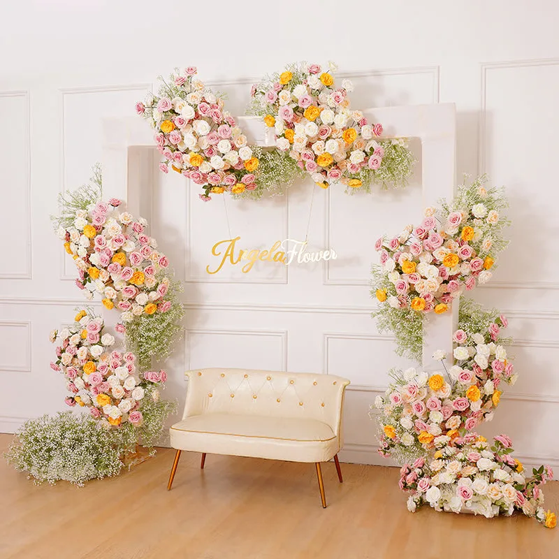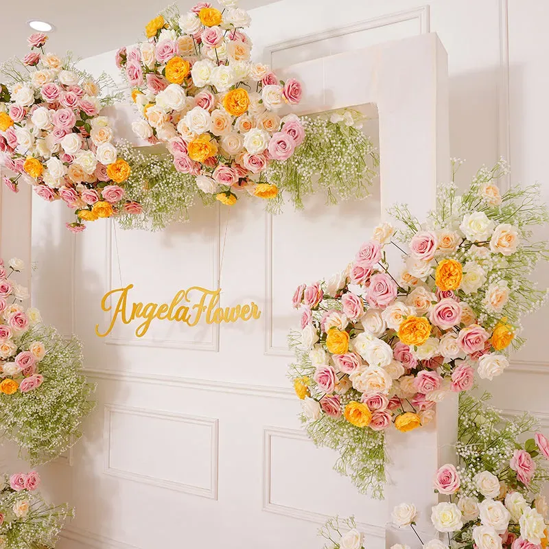 A8701 Pink White Orange Rose Baby's Breath Floral Arrangement Decor