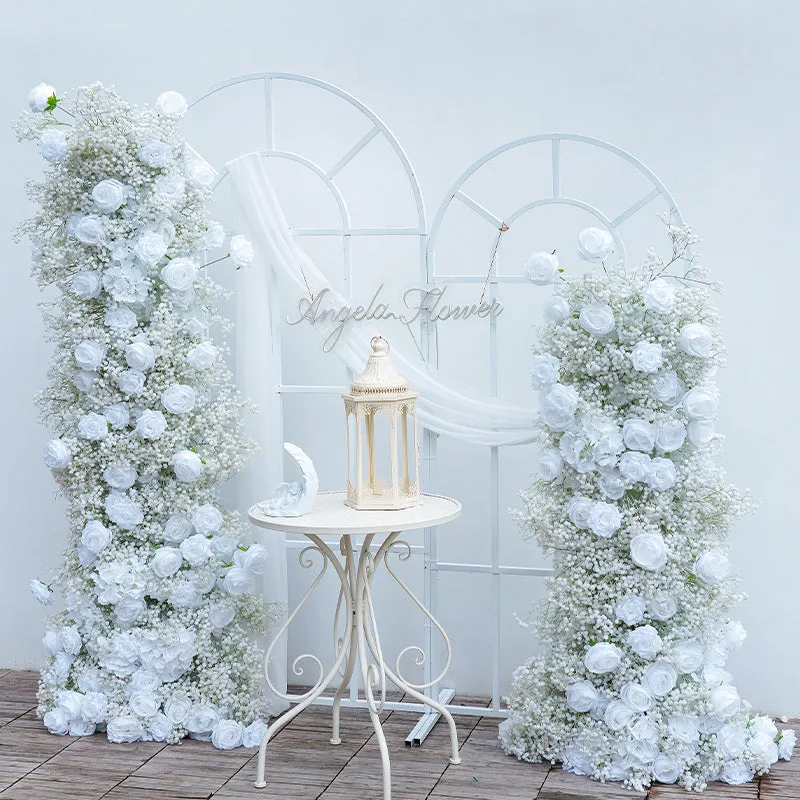 A8716 White Rose Baby's Breath Wedding KT Board Decor Floral Row Arrangement