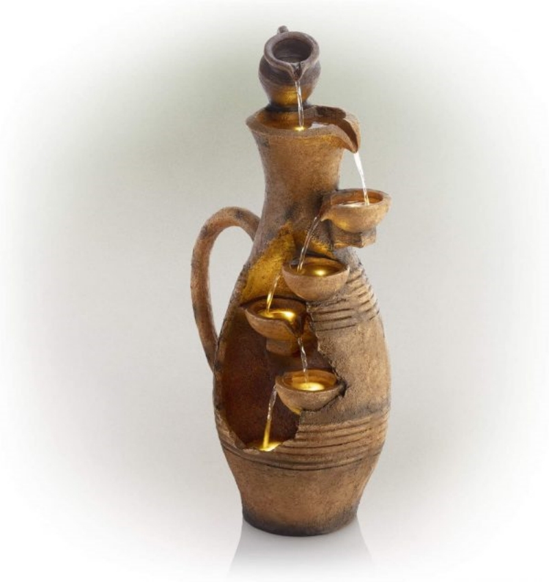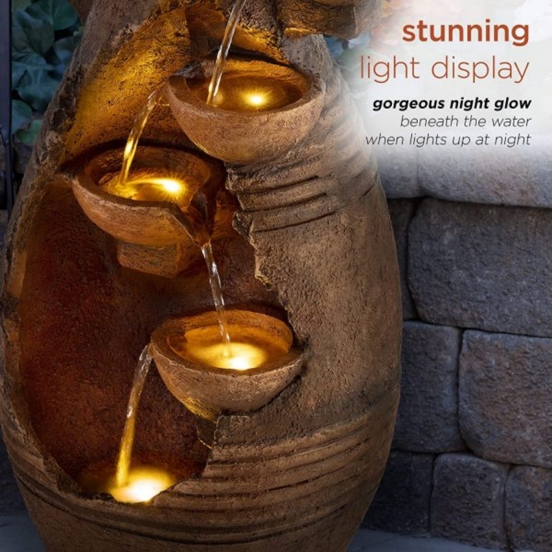 OUTDOOR GARDEN DECOR: Antique-style broken pitcher floor statue with 10L water capacity and 6 warm white LED lights, gives an ancient feel and adds peaceful ambiance to your outdoor living space