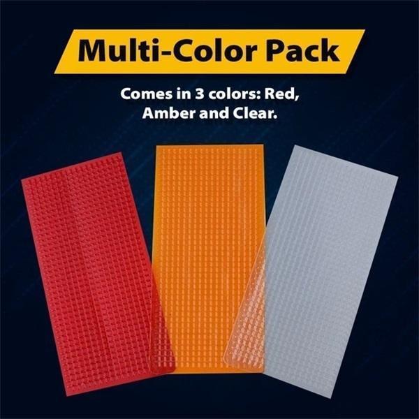 Each pack contains red, amber, and clear-colored panels with a pre-formed grid pattern to closely match the color and reflective quality of any car lens. It’s easy to install with a special self-adhesive that dries in a weatherproof seal . It’s applicable to any car light .