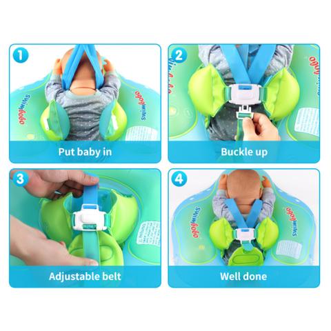 - Design principle: support from the bottom to prevent baby from slipping out, plus non-inflatable foam chest support to effectively protect baby's tummy, longer and wider sides thus preventing baby from tipping over from both sides. One touch unlocking for quick removal of the swim ring.
