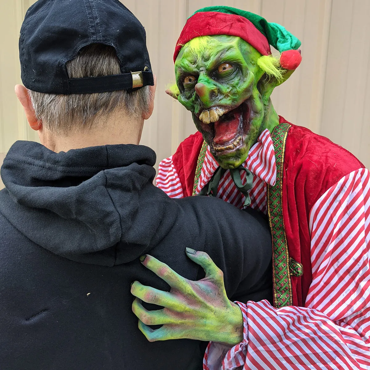 Buckey the Rude Elf can be used in your attraction as part of the show, to entertain your queue line and take her out to other events and in parades to promote your attraction or event. Or just use her as part of an incredibly creepy Holiday costume.