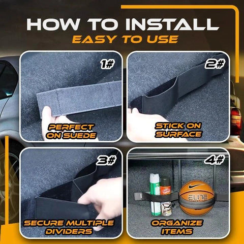 SELF ADHESIVE: The opposite side is lined with strong velcro that firmly sticks to the suede sides of the trunk and prevents it from peeling, ensuring the organizing strap doesn’t peel off.