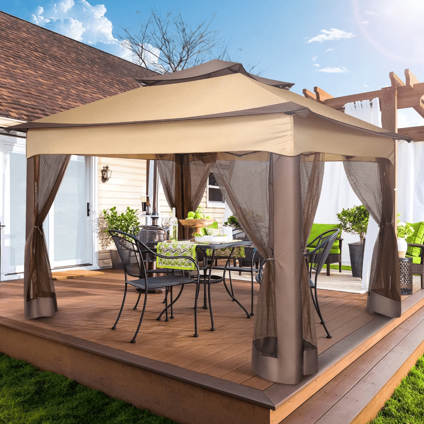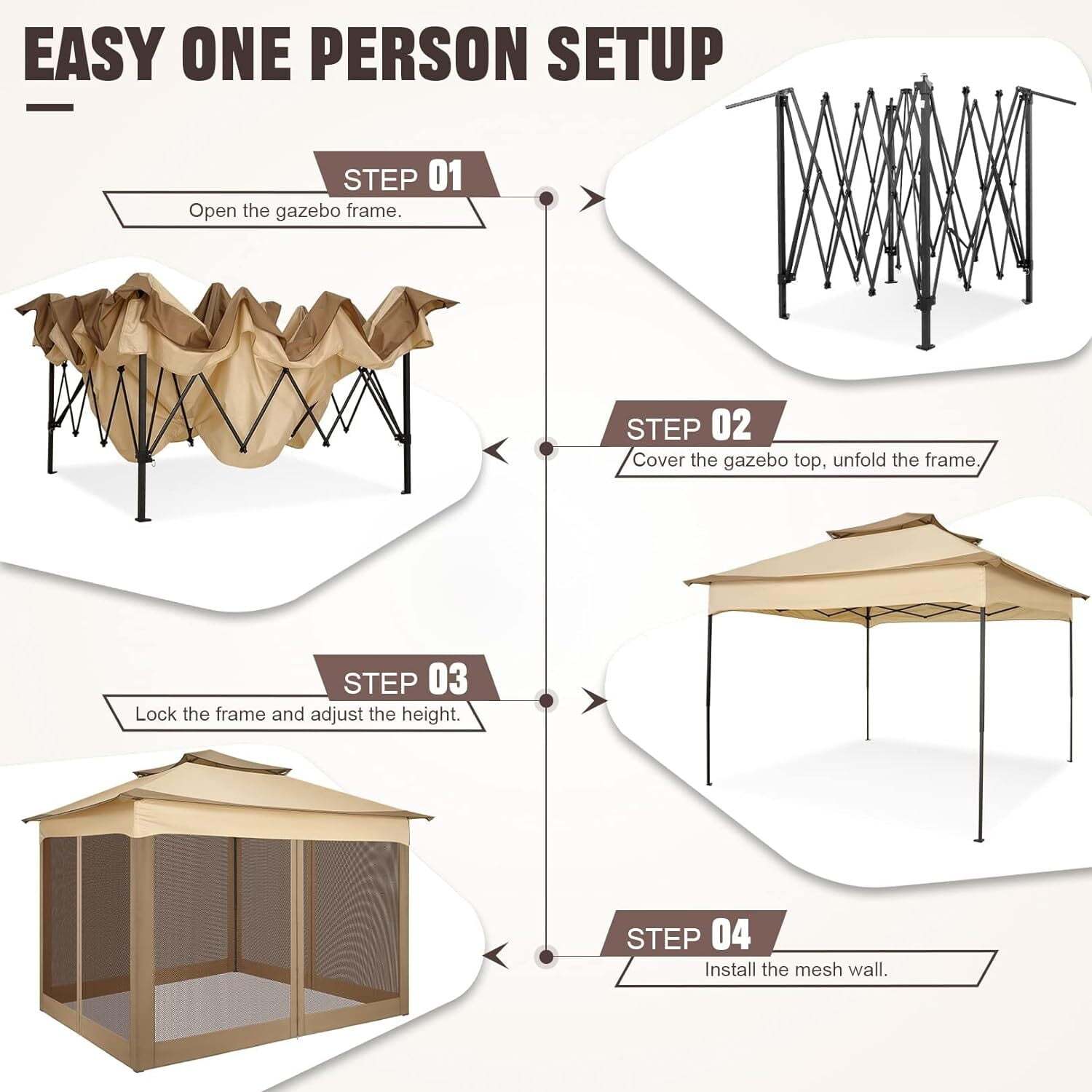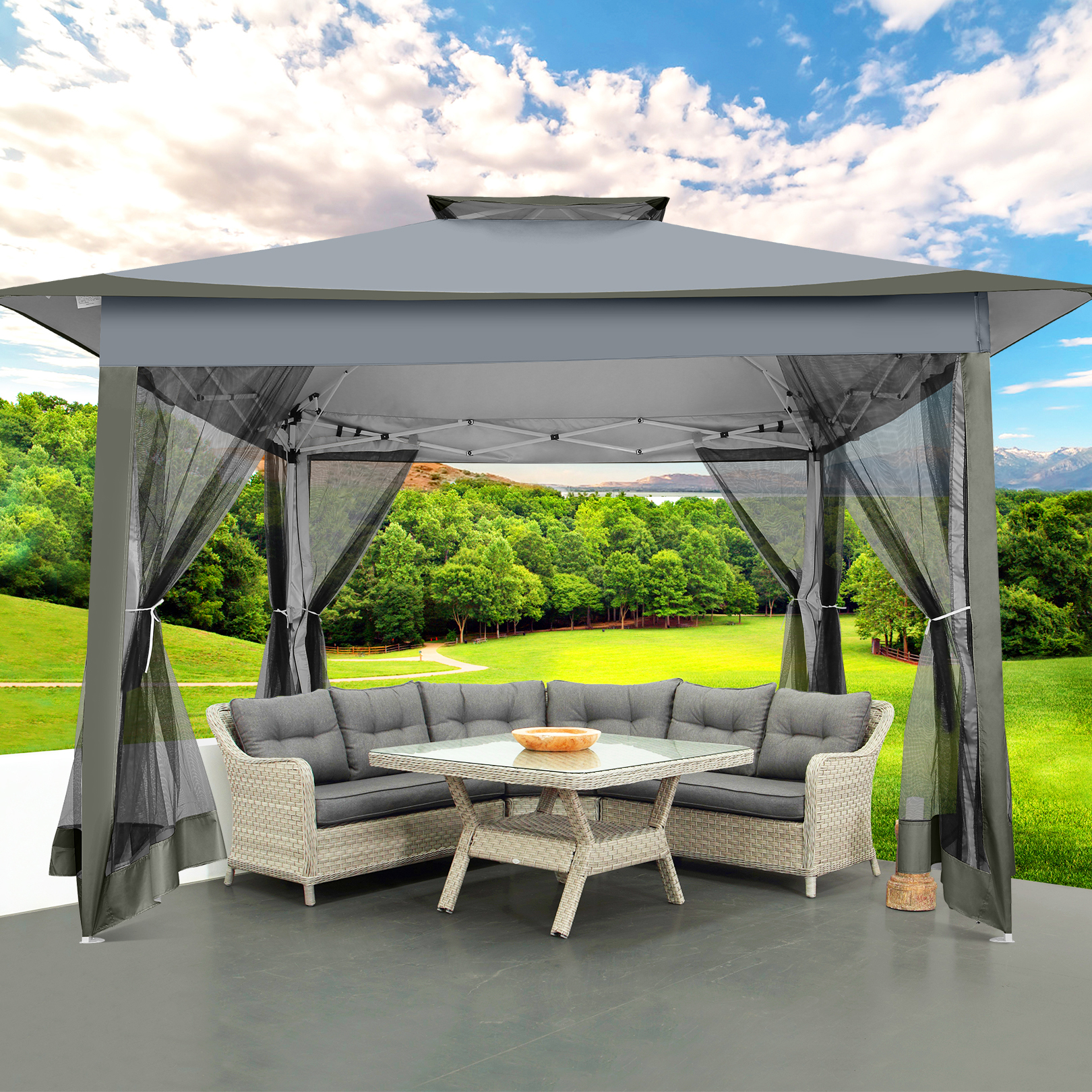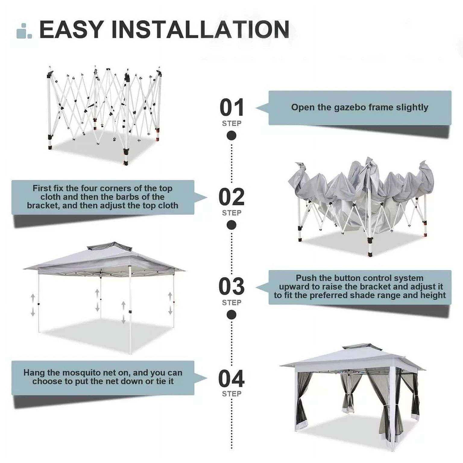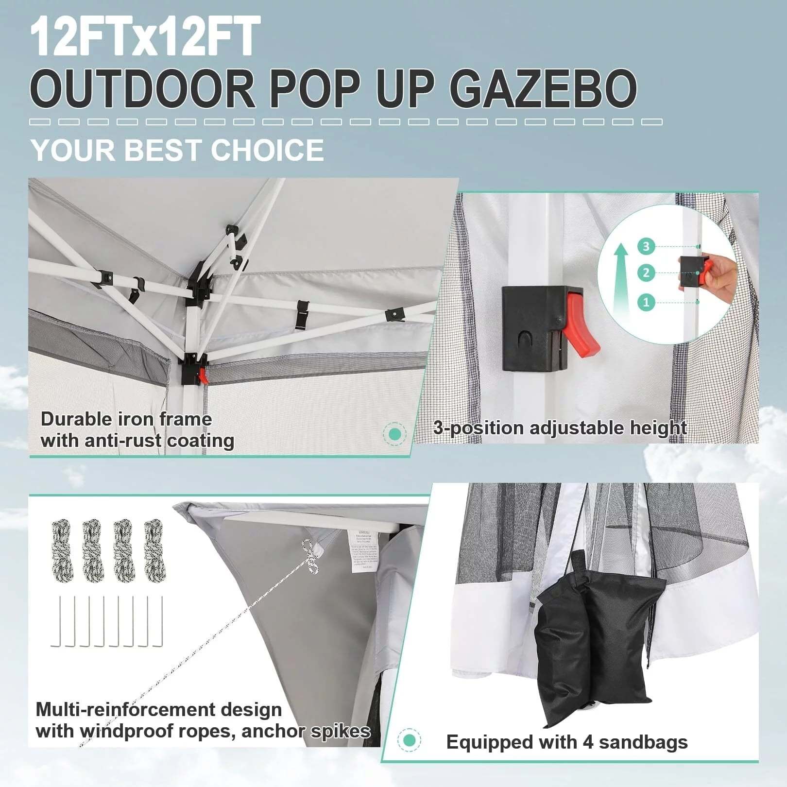 The Cobizi 11X11 pop-up patio gazebo is elegant, weighing 38 pounds, providing a cool place of 121 square meters, which can accommodate about 10 people. At the same time, it provides better stability under wind -shaking conditions. The surface is made of waterproof and ultraviolet -proof 420D Oxford fabric materials. It is also equipped with mesh -like side board, which can not only block the nourishment, but also provide ventilation and more privacy. Whether it is rainy, it is very suitable for you to enjoy outdoors!