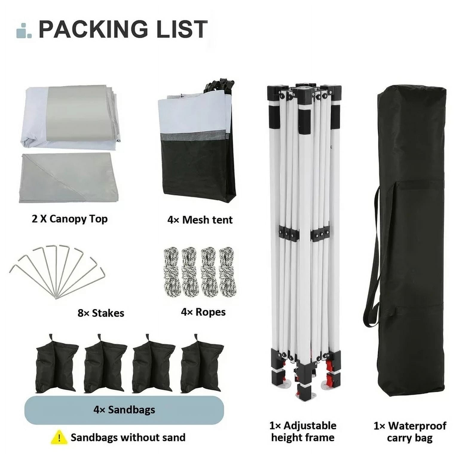【Premium Quality�?/strong>Sturdy construction with a corrosion resistant steel frame for long-lasting durability, and provides strong support for the entire outdoor canopy. Super durable pop up canopy top made with 420D Oxford fabric to ensure 99% UV protection, water resistance, and cooler shade area.