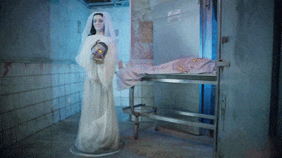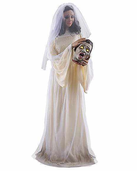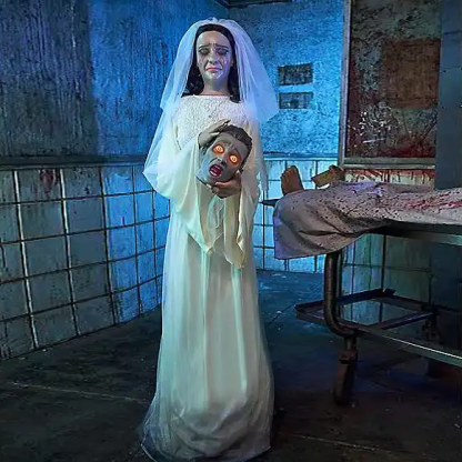 With her light-up yellow LED eyes this Evelyn Leech animatronic will always be watching your next move. When she moves her arms to give you a closer look at her groom's head try not to scream too loud or you could join him!