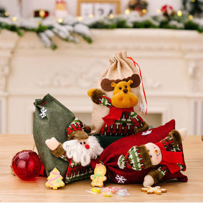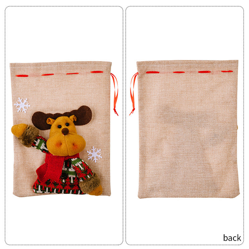 1* Drawstring Christmas 3D Xmas Linen Gift Bags