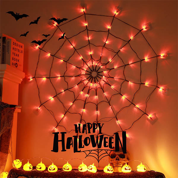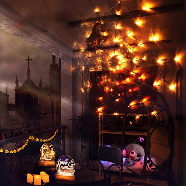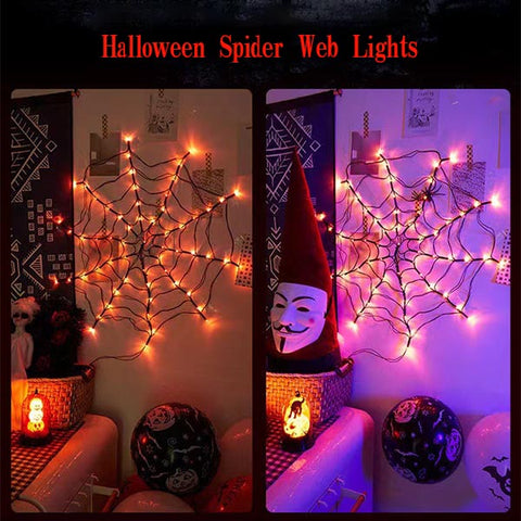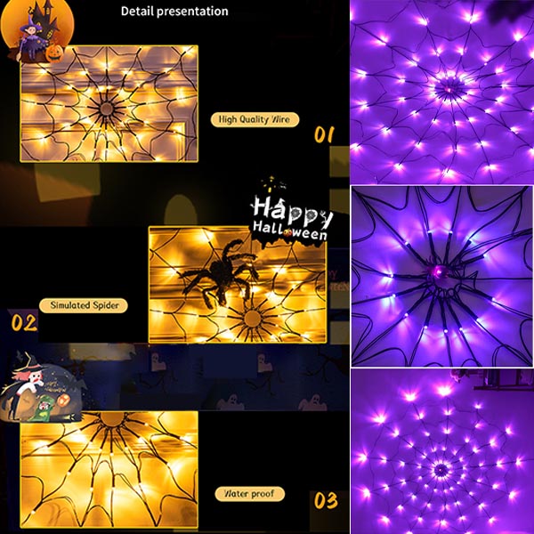 Main Features Function Upgrade —— 3 kinds of lighting modes including steady on, random flash, and fade. Change the mode as you like. Perfect for decorative your home , use Spider Web Lights to attract and amaze your neighborsSafe and Waterproof —— UL certified waterproof bulbs and plug , can withstand drizzle and water droplets. It has a safe low voltage and will keep cool after long-term use. No need to worry about using it outdoorEasy to Match —— 8 white sticky hooks allow hanging on wall, window, and door. Also as backdrop/curtain, garden/yard, and lawn, porch, balcony and patio decor,Spiders can be removed to everywhere you like, create a horrible atmosphereWidely Used —— Decorate your wall, and yard/courtyard, hedge and fence, porch and patio. Perfect for Halloween themed party, masquerade, and costume party, bar and house of horrors