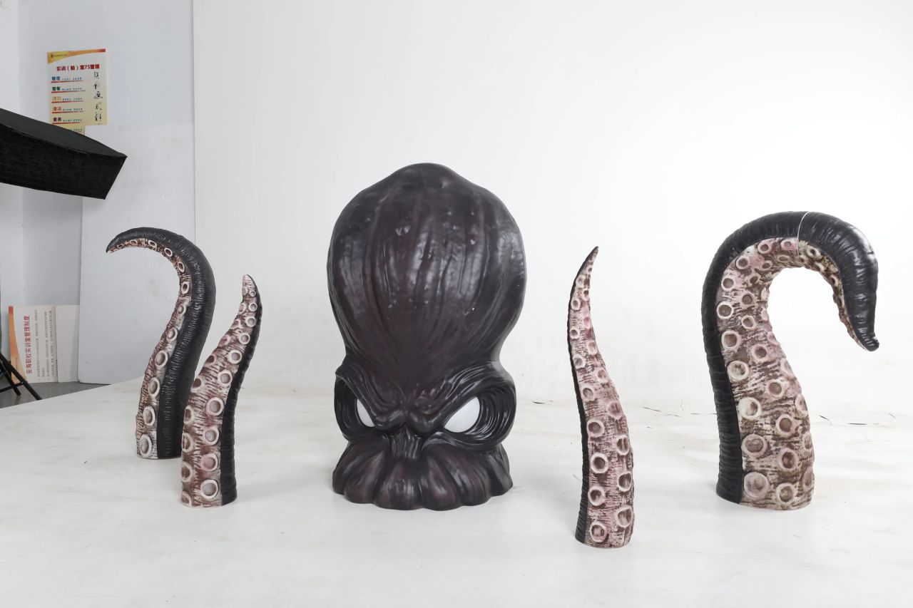a monster head with glowing eyes and four detachable fluorescent green light-up tentacles that you can arrange around your yard to scare your neighbors and any unwelcome visitors.
