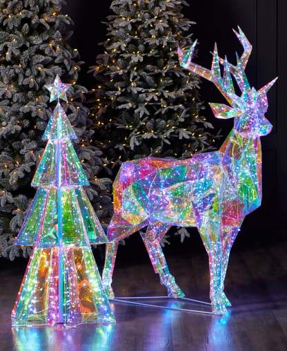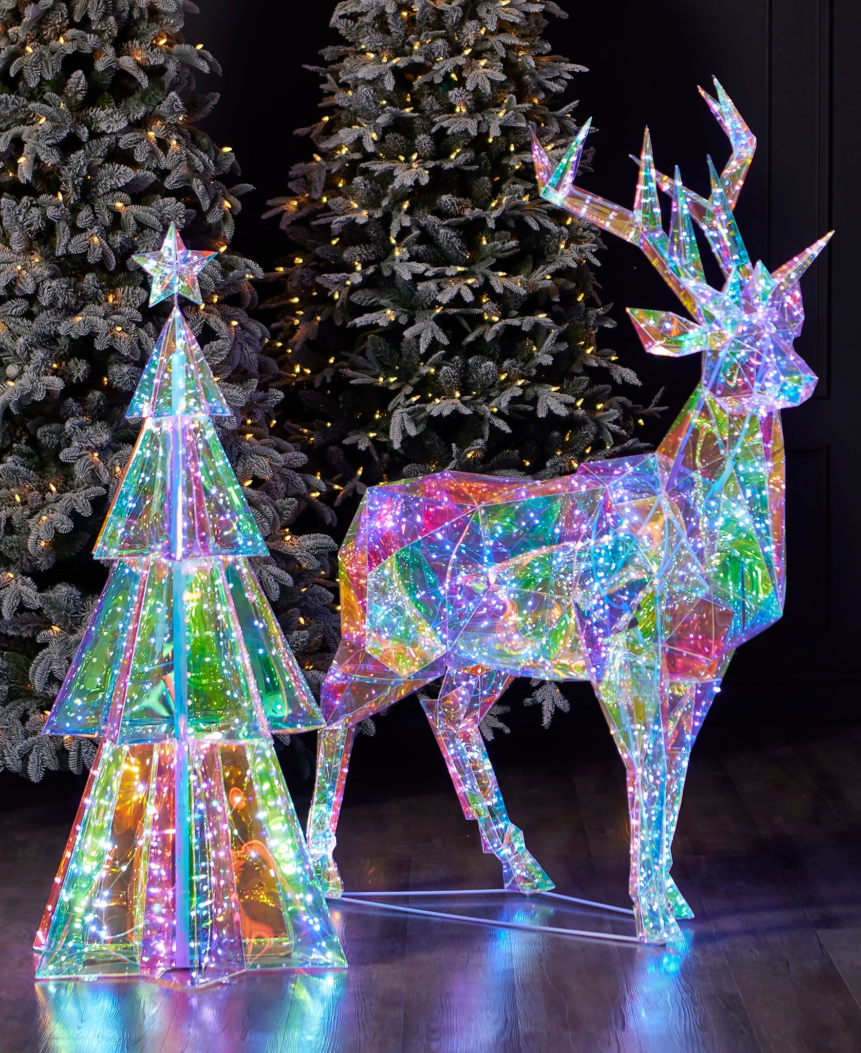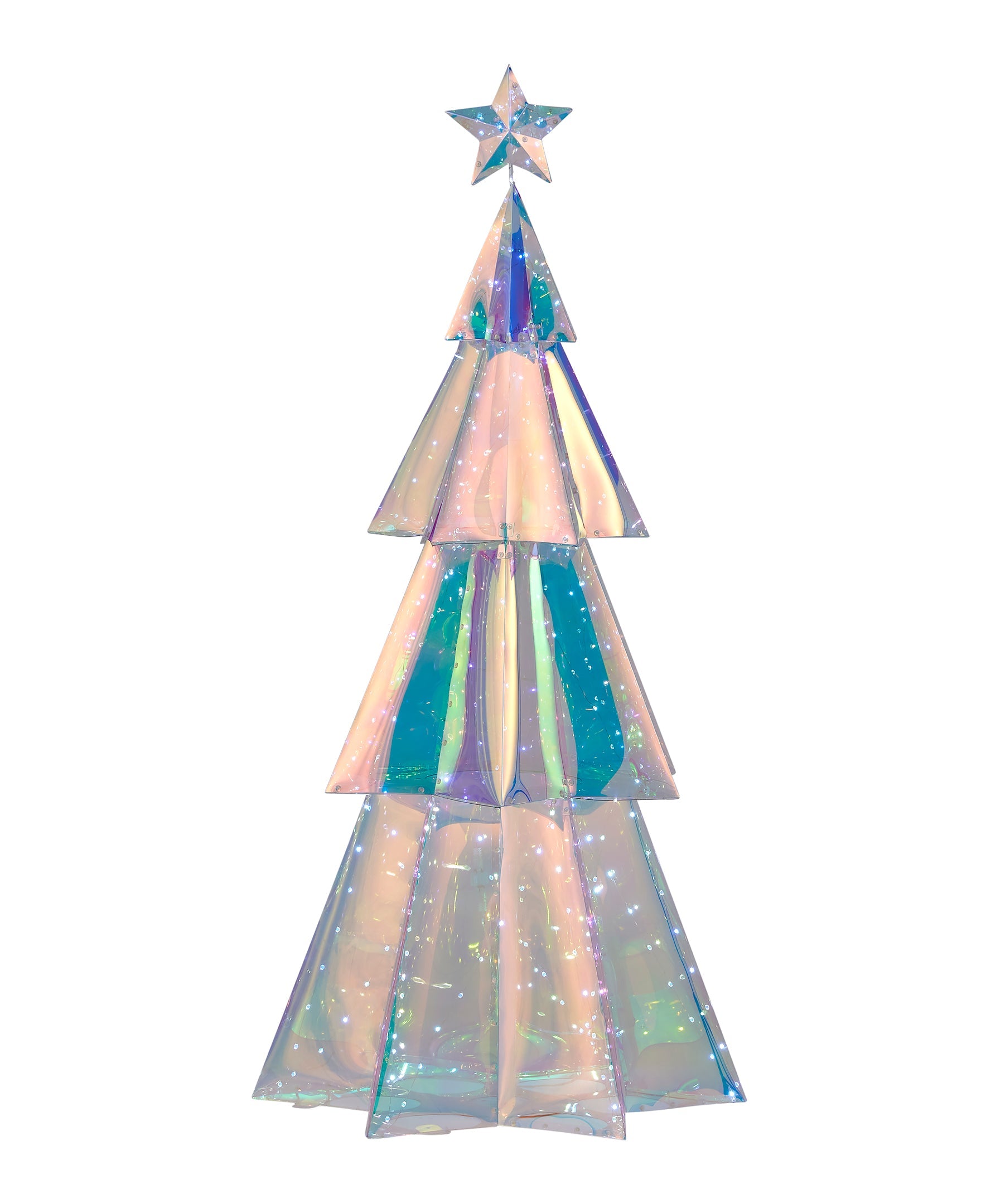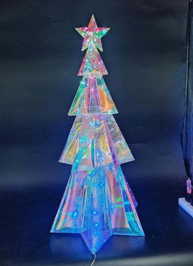 Illuminate your holiday celebrations with our Iridescent Christmas Tree crafted by Dunn Deals. Standing at 45 inches tall and adorned with 320 LED lights, this enchanting tree casts a radiant glow whether displayed indoors or outdoors. Elevate your festive decor with this dazzling centerpiece, designed to enchant and delight throughout the holiday season.