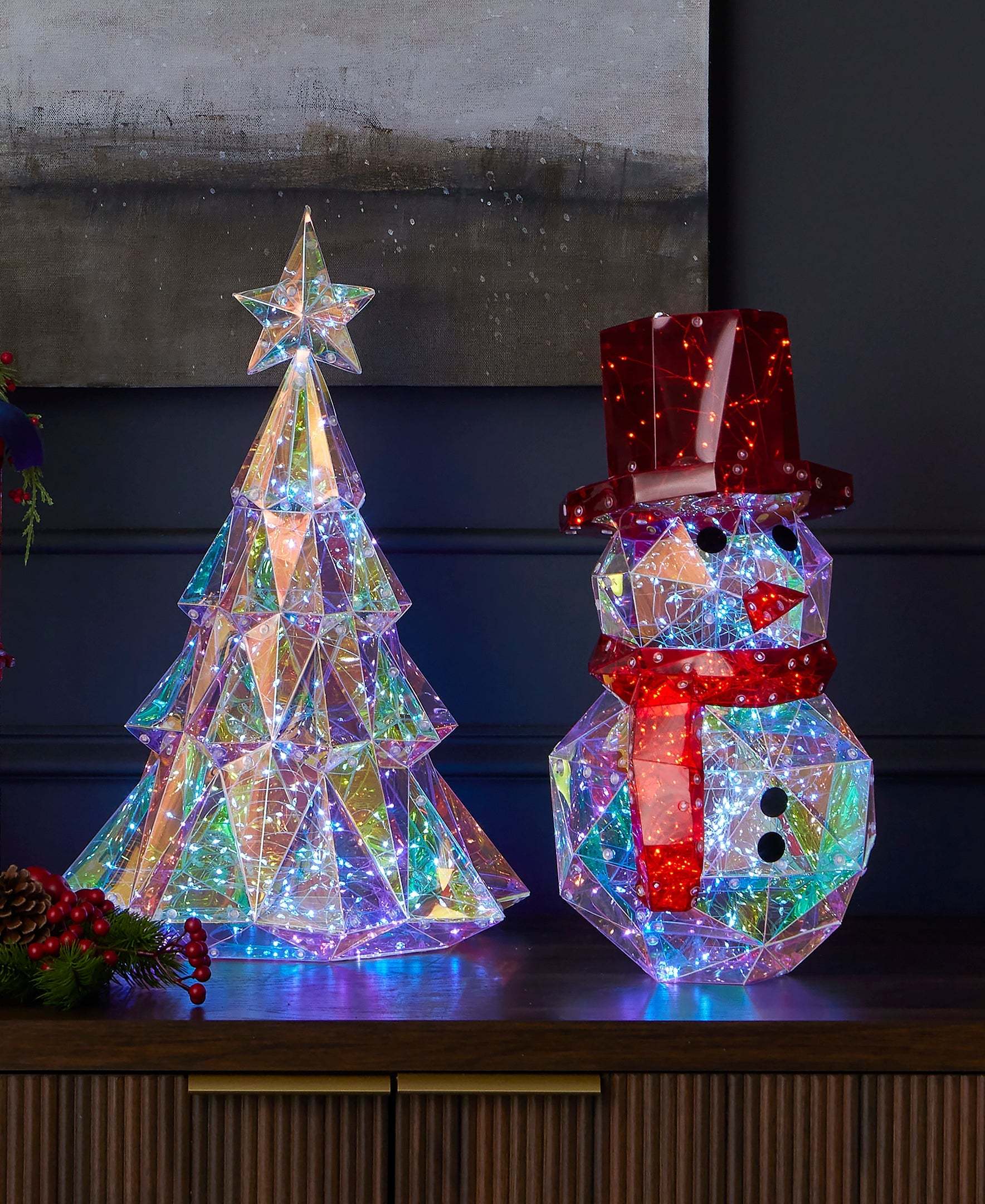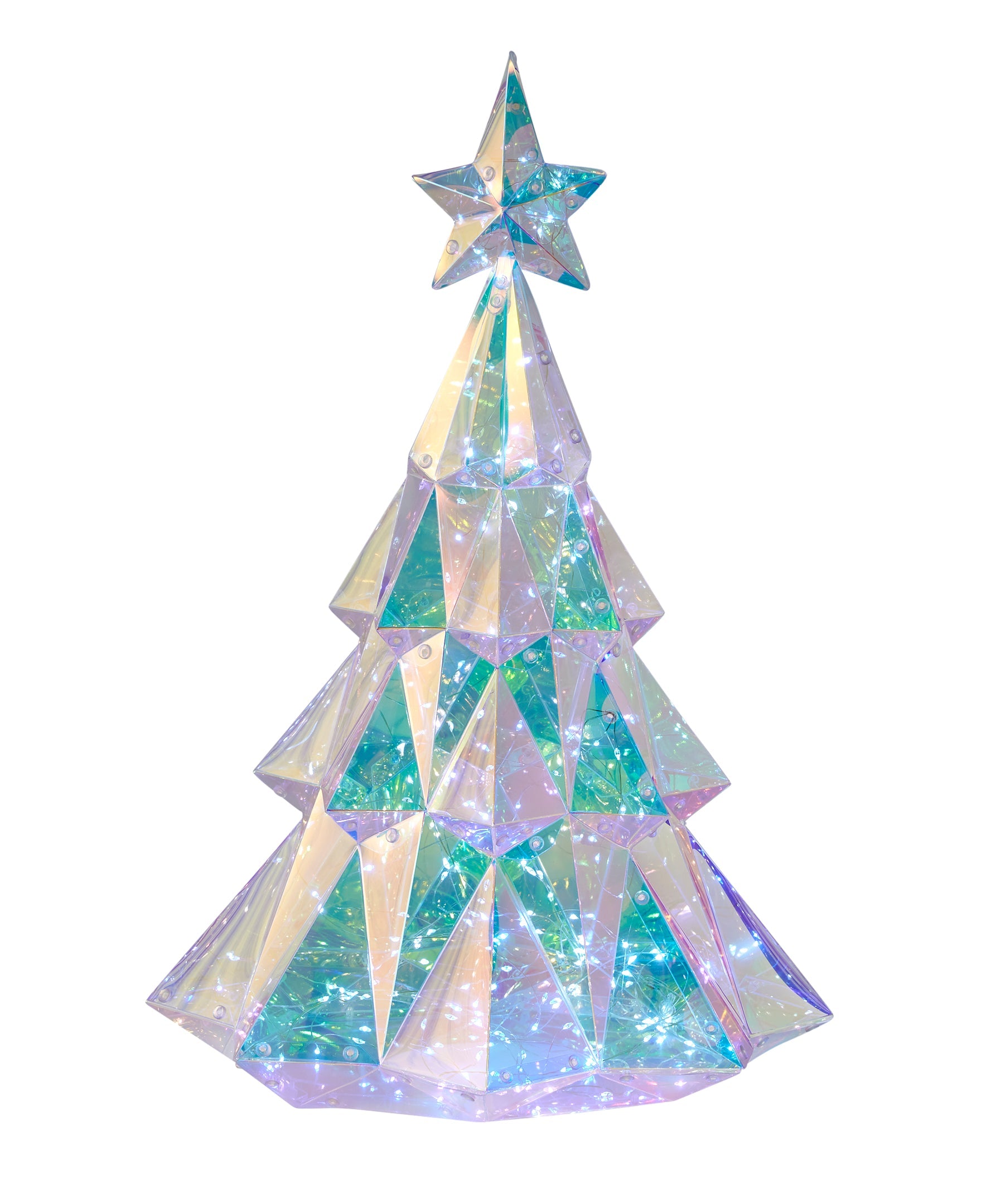 Brighten your holiday space with our Iridescent Diamond Christmas Tree crafted by Dunn Deals. Standing at 19 inches tall and featuring 200 LED lights, this stunning tree brings festive cheer to any indoor setting. Elevate your seasonal decor with this radiant centerpiece, meticulously designed to captivate and delight throughout the holiday season.