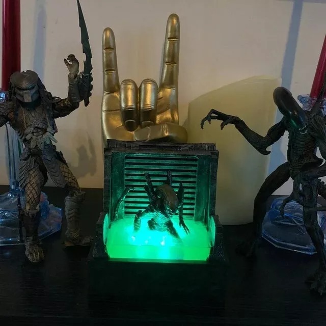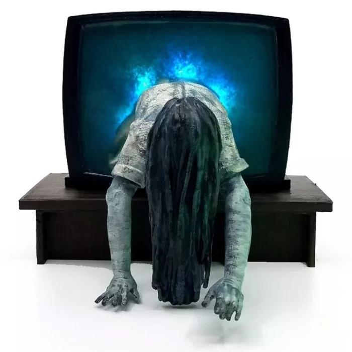 This diorama was designed, printed and hand painted. art resin was used to create the T.V. screen. The diorama comes with an LED light puck that uses 3 AAA batteries along with a remote where you can change the colors and various other settings. No two pieces are exactly alike as they are hand painted. Do not hesitate to ask if you have any questions. Thank you.
