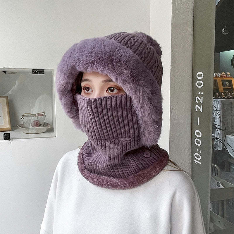 THICKENED & WARM - Made with a thick, cozy knit, this hat offers excellent insulation against cold weather, ensuring warmth and comfort even on the coldest days. Perfect for winter activities, it keeps your head, ears, and face protected.