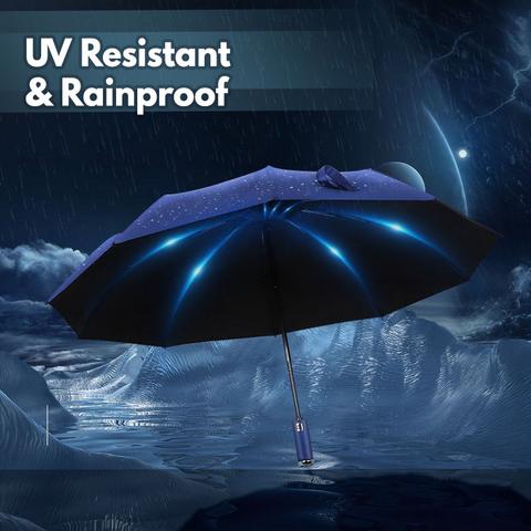 The Windproof LED Sun & Rain Umbrella lights up the night, so you can travel safely even on rainy nights! Extra-large umbrella with superb wind resistance to guard you when travelling on rainy nights.