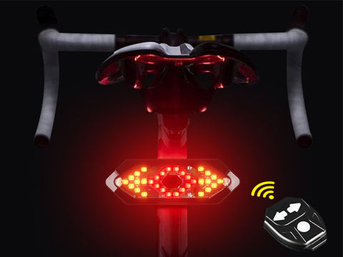 REMOTE CONTROL WITH TURN SIGNAL: With 3 buttons on the wireless controller, the bicycle tail light can be remotely controlled to send signals in 5 different modes. Include turn right, turn left, red light always on, red light flashing and all flashing. You can change different bike turn signals modes according to your needs and occasions, effectively reminding passing vehicles.