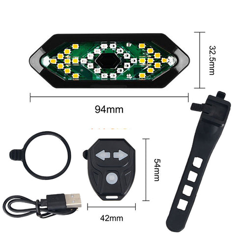 Specifications Taillight Size: 94*32.5*26mm Remote Control Size: 54*42cm Net Weight: 54g (indicator light + strap) Gross Weight: 110g