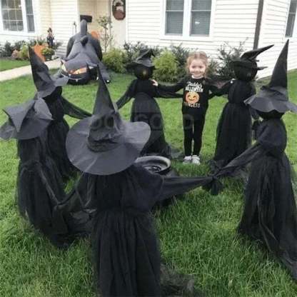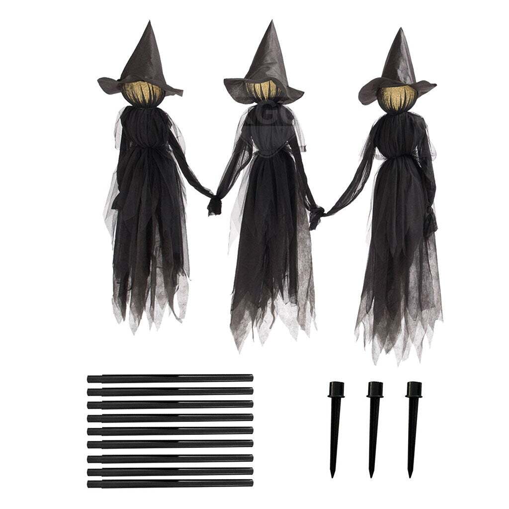 👻This triplet of witches hold hands in an eerie exhibit of sinister sisterhood. You'll love the specter they create in your front yard - and their included ground stakes make them so easy to display.