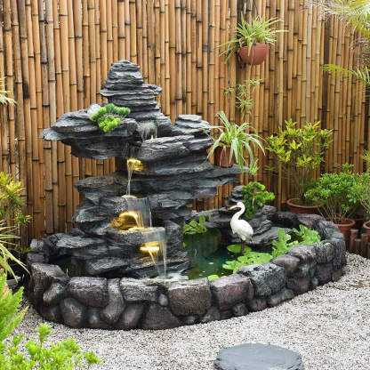 ALL PARTS INCLUDED: The waterfall fountain includes all the necessary parts and pump, so you can start creating an outdoor oasis by simply plugging it into an outdoor outlet and filling the lower level with water.