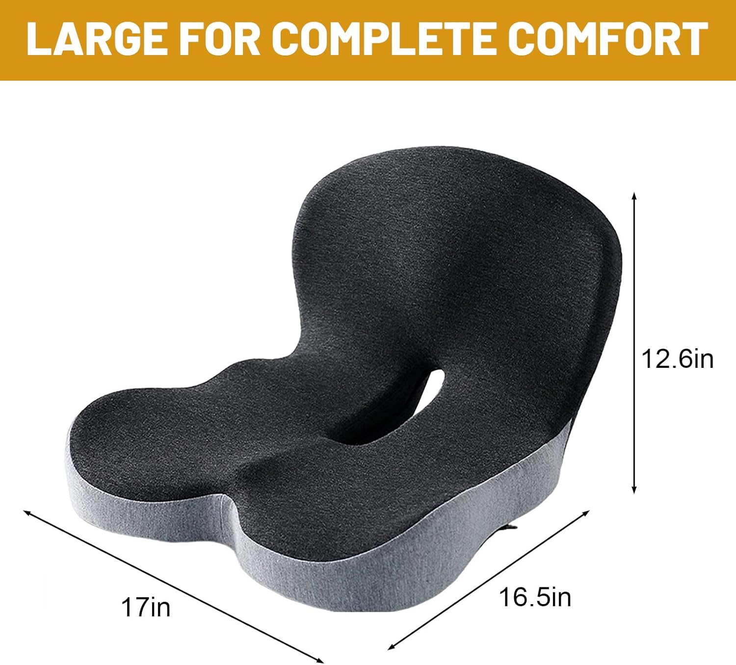 ✨This memory foam seat cushion offers pain relief, a universal fit, breathable cover, and a non-slip design for all-day comfort.