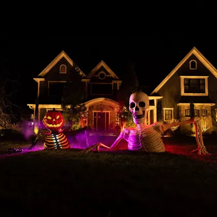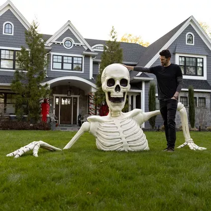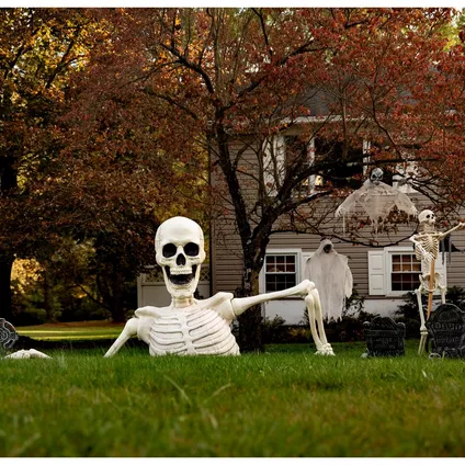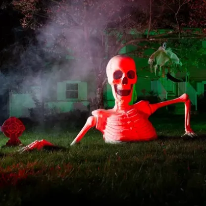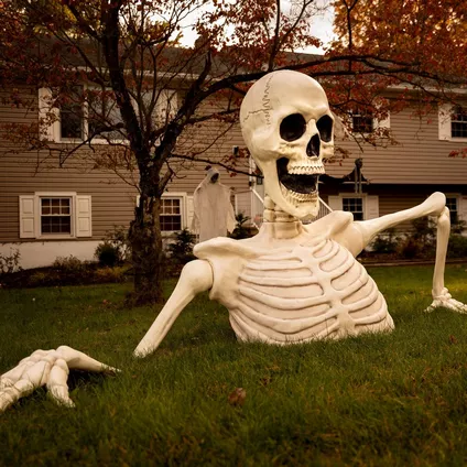 Revolutionize your Halloween décor with this Giant Ground Breaking Skeleton, an awe inspiring spectacle that turns heads and sends shivers down spines! Standing 65 inches high and spreading out 128 inches wide this gargantuan skeleton appears to be breaking through the ground! This Colossal skeleton creates a jaw dropping scene perfect for haunting displays! Your guests will not believe their eyes, this mega sized skeleton exudes an imposing and captivating presence. Durable and designed for both indoor and outdoor use, this giant skeleton is the ultimate centerpiece for a truly memorable Halloween display! Elevate your decorations and get the Giant Ground Breaking Skeleton today for an unforgettable spine chilling experience this Halloween! Easy assembly with no tools required and stores easily for years to come!