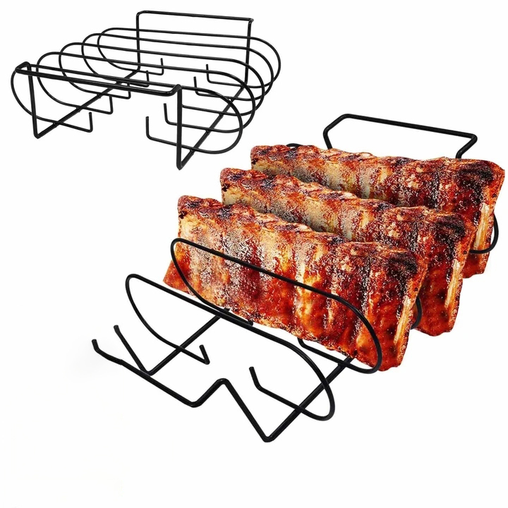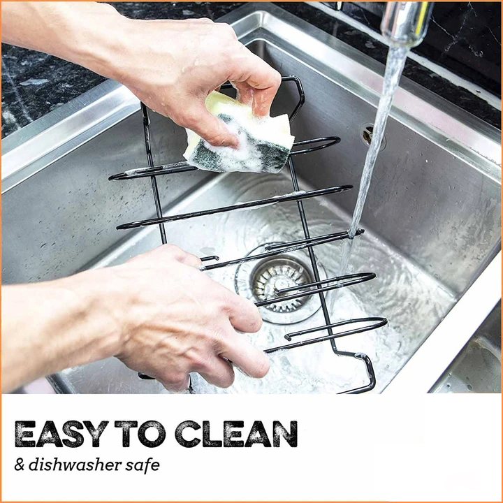 Easy clean-up giving you more time to enjoy the party & dishwasher safe – our well made & durable easy to transport rib holder is constructed from a heavy-duty steel wire with a nonstick coating, making clean up a breeze. Simply toss it in the dishwasher when you are done or quickly clean by hand with mild soap & water, nice & easy. King of the backyard barbecue I hear you say!