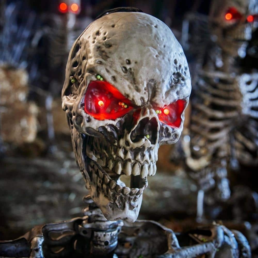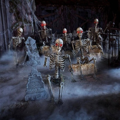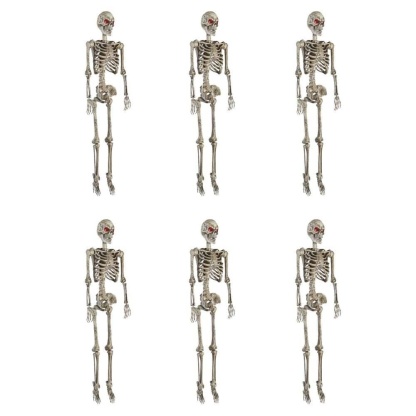 Set a scary scene with this six-pack of eerie Poseable Pitted Skeletons. These figures have poseable limbs so you can create the perfect scare and red LED eyes for extra spookiness.
