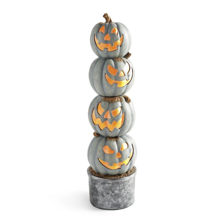 Pre-lit Jack-O'-Lantern Topiary (164030): 11" dia. x 42"H, 16 lbs.