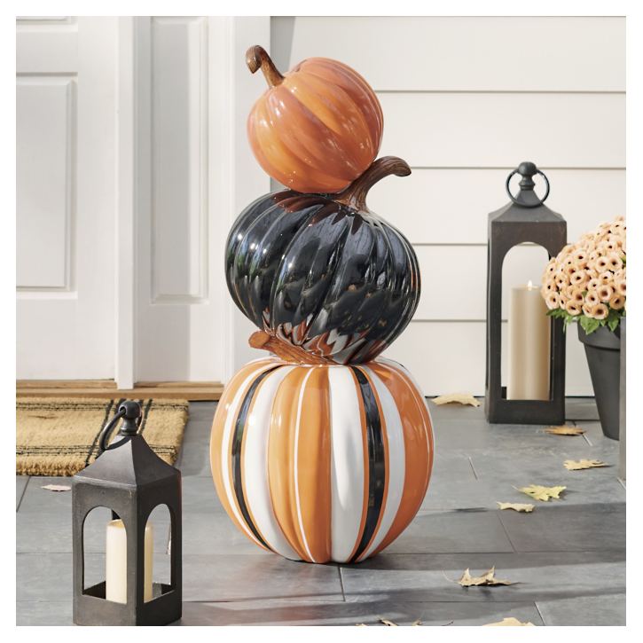 Bottom can be sand- or soil-weighted to increase stability; 1-1/4" hole at top to fill (a funnel makes it easier); hole covered once pumpkins are stacked