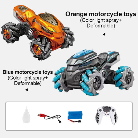 Color Light Spray - This Remote control deformation spray motorcycle toy is amazing! It can release spray. The release of the spray will also be paired with colored lights, very cool! Get it now and enjoy the fun!