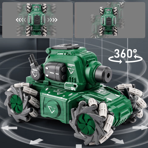 Remote Controllable - Remote control deformation spray motorcycle toy and Remote control water bomb spray tank toy are great presents for your kids. They have a remote control available, 360°rotation and lateral drift. It is easy to operate and suitable for both indoor and outdoor play. Let your kids enjoy the fun of driving it.