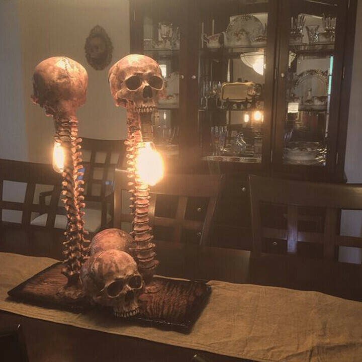 💀The large skull lamp is made up of four bones connected together, and their lower jaws are missing. This treacherous lamp is cast from high-quality resin before being carefully hand-painted.