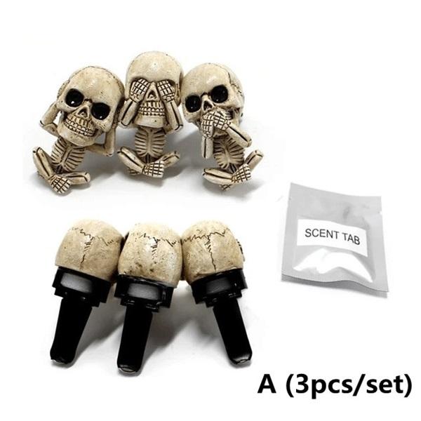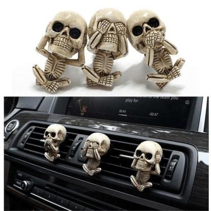 ??dear customers, Skull Sculptures Set - It is recommended that you buy 2 sets, one set for your own car, the other set is a good choice whether it is a birthday gift for a friend or to decorate your room.-----Trio of evil skulls with air freshener This skull head piece is a must-have for anyone that is into skull head.