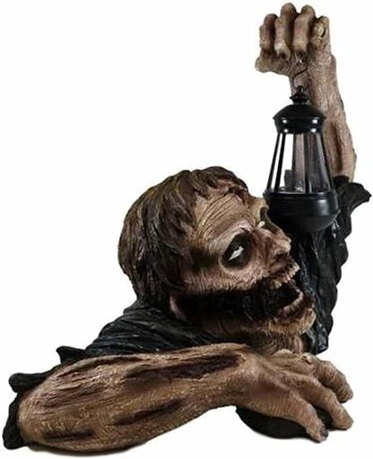 With its solar-powered LED lantern, this statue illuminates your garden with an eerie glow as darkness falls. Crafted with attention to detail, the statue captures the terrifying essence of a zombie, making it an eye-catching centerpiece for any Halloween-themed garden or haunted house.