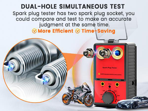 DUAL-HOLE SIMULTANEOUS TESTING: Allows simultaneous testing of two spark plugs, enabling quick comparison and diagnosis of ignition issues in multiple cylinders.