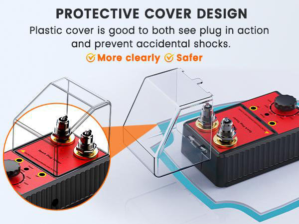 PROTECTIVE COVER DESIGN: Features a robust protective cover that shields users from potential sparks and debris during testing, enhancing safety and reliability.