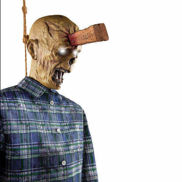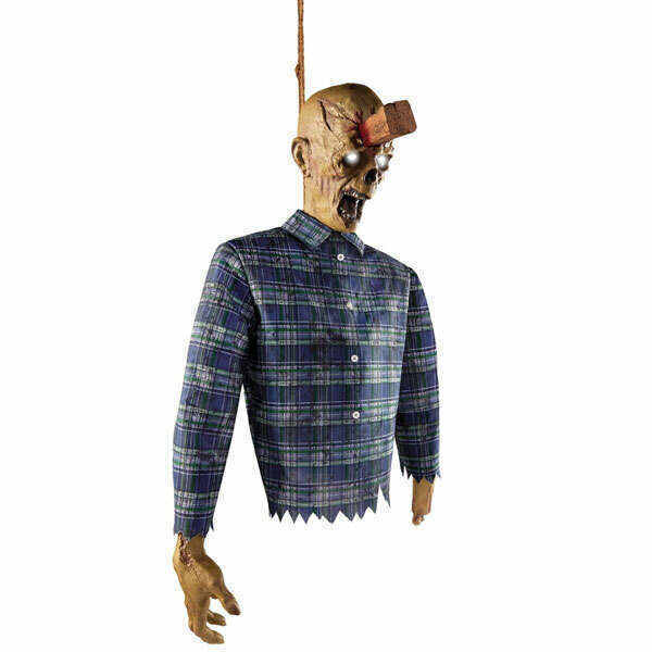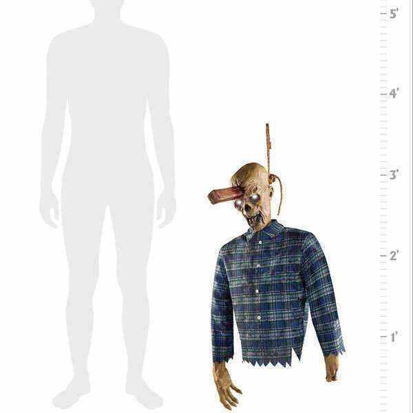 Leave Spike hanging around with your spooky home décor this Halloween and he’s sure to add some fear to any display. Hanging out at about three feet tall, watch as his back and forth moving torso comes to life all while groaning in complete agony. The LED light up white eyes on this apocalyptic animatronic make it the perfect addition to any haunted house setting this Halloween.
