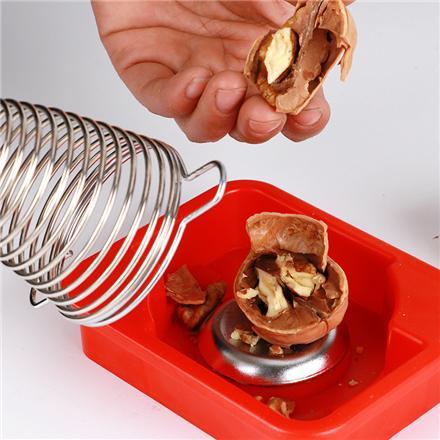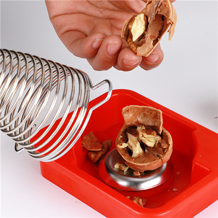🌰Easy to use: Your nut is placed in the stainless steel bowl. Then you stretch the spring and as soon as you release the ball, it slams down and cracks open the nut.