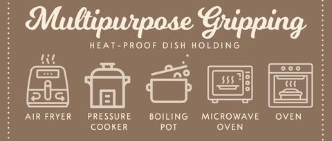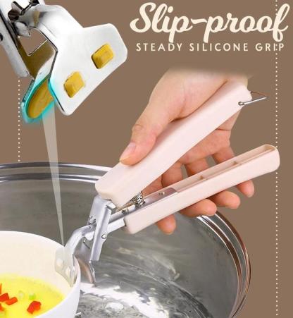 Designed with an ergonomic handle and a slip-proof silicone gripping pad, this holding clamp is here to keep your dishes in place during transferring!