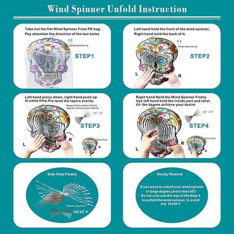 Includes a swivel hanging hook so the wind spinner can twirl in the breeze. Wind spinners are easy to open to the angle you desire and conveniently hang up wherever you like to.