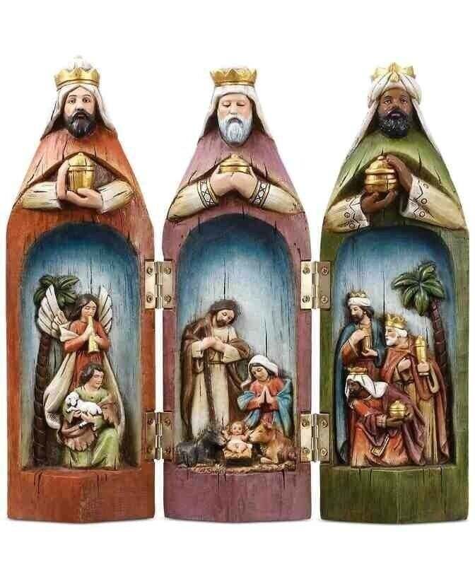 This beautiful piece can be unfolded to show the carved religious scenes inside or folder to show the 3 Kings in a smaller rendition.